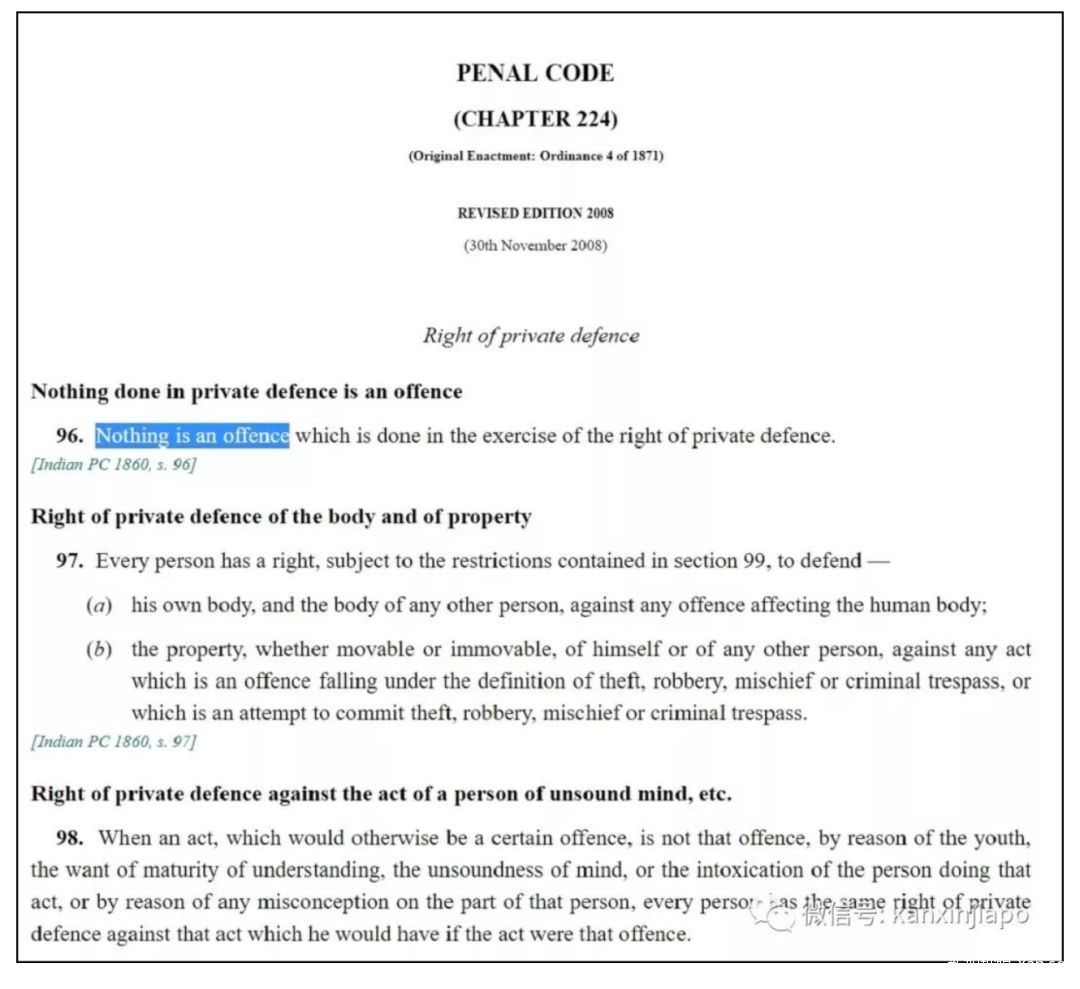 在新加坡,判断“正当防卫”的条件也是比较严谨的。