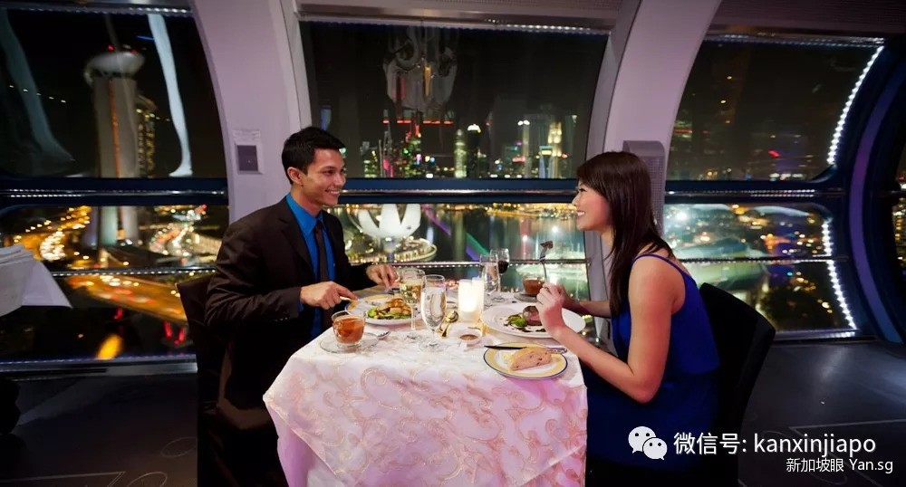 然而,新加坡的摩天轮一个舱里能容纳不少人,友情提示单身狗搭乘时请避让情侣,不然被周围都在亲亲的CP包围着,你大约想从最高点直接跳海吧……咳咳,不要冲动,在新加坡自杀犯法。