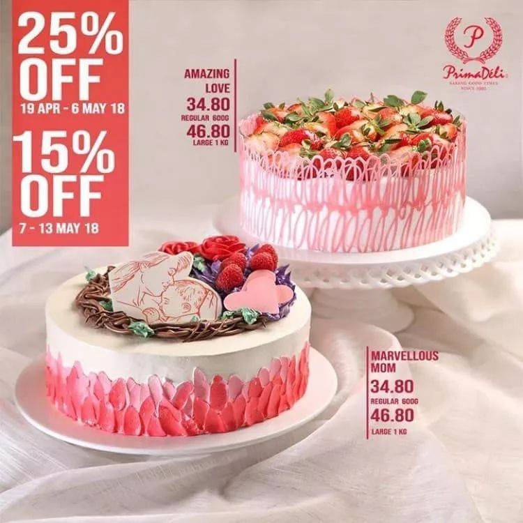 母亲节蛋糕高达七五折优惠!
