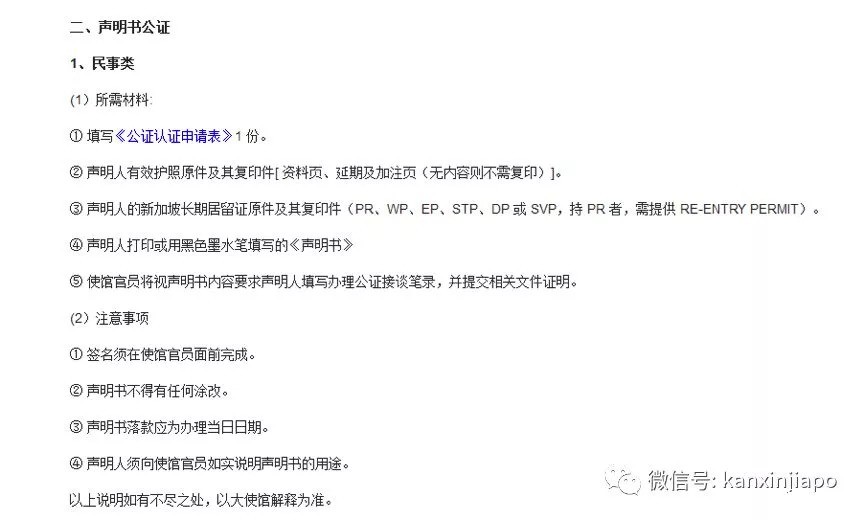 然后,还需要去中国驻新加坡大使馆办理公证,声明的要求如下: