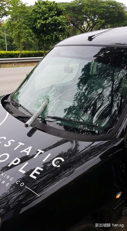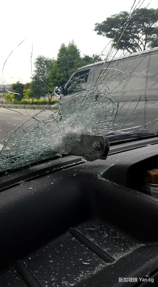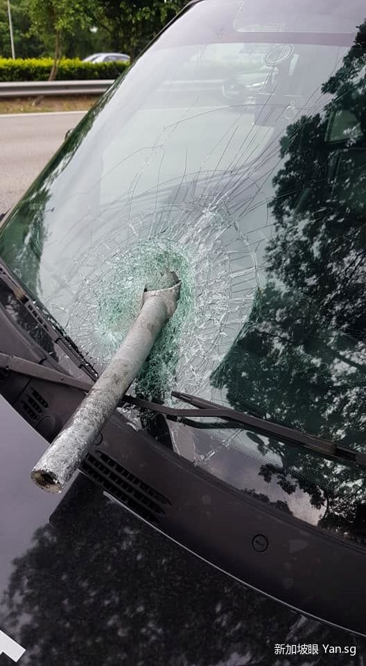 新加坡高速路天降大铁棍,径直插入汽车玻璃!
