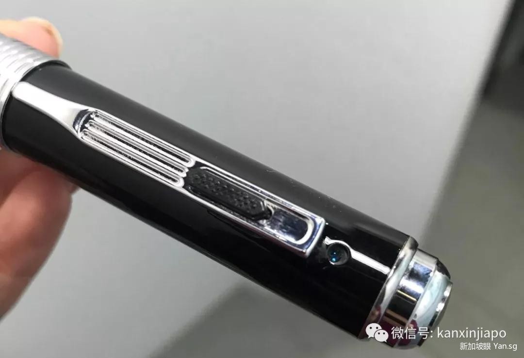在发现被偷窥后,网友立马就对现场的犯案工具——那支“笔“进行了拍摄取证,长这样的: