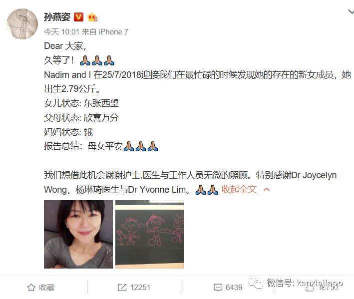 消息来得如此惊喜,毕竟在小女儿出生前两天,孙燕姿才过了自己的四十岁生日,文字照片都透露出满满的幸福感。