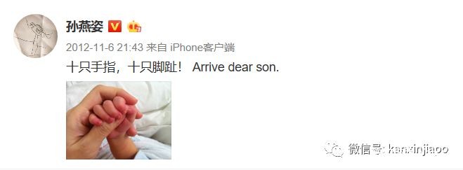 六年前,大儿子的出生,使得孙燕姿成功晋升为人母,当时她也发了条微博庆祝儿子“纳小子”的诞生。