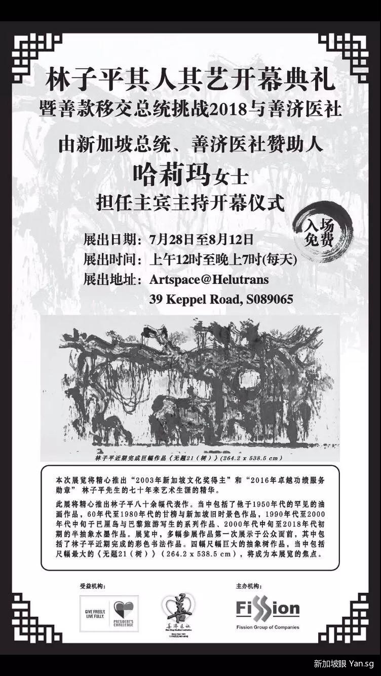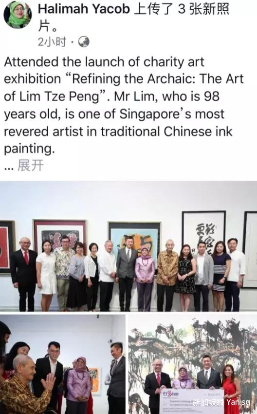 今天,新加坡总统哈莉玛亲自出席了一位老人的画展开幕式并po出脸书。这位老人就是98岁的新加坡国宝画家——林子平。