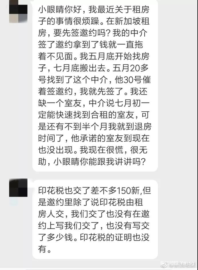有网友向我们求助,在新加坡租房跟中介签合约后,答应找的室友却一直未出现,交的印花税也没在邀约上体现出来……