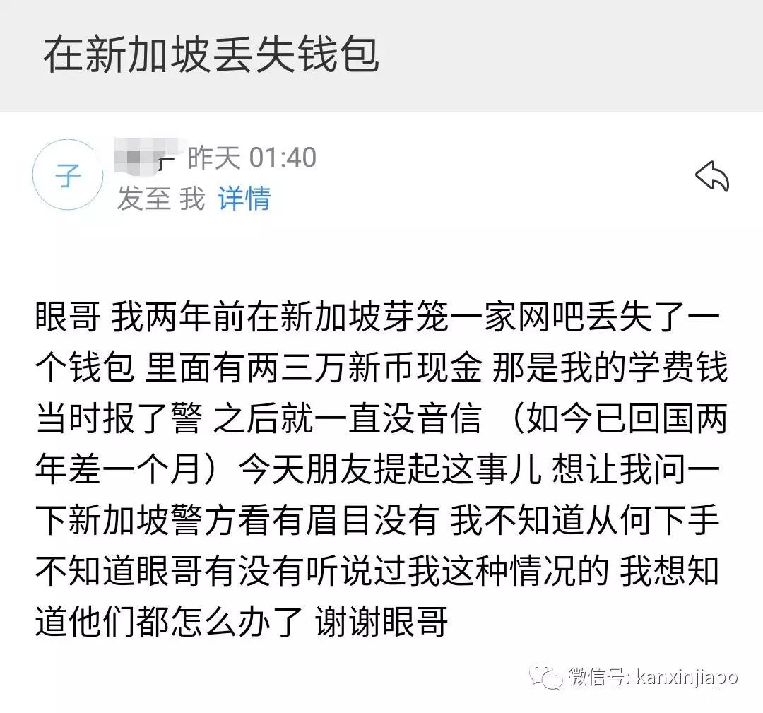 另外,也要提醒大家,虽然说新加坡治安是出了名的好,但是也不一个小偷也木有哦,也还是要注意自己的财产安全。看,还有网友昨天给我们说,两年前在芽笼丢了两三万新币,至今还未找回……心疼ing