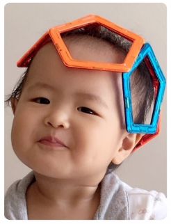 4. 拿了几块积木,用A4纸裹起来给我:“妈妈,这是我给你做的冰淇淋。”