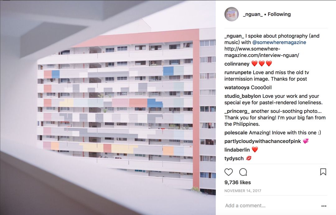 作为一个生于斯长于斯的新加坡人,Nguan在美国读书工作后选择回到新加坡。Nguan的ins评论里,常见的一个词语是,“Nostalgia”(乡愁),除却绵软的粉色色调,Nguan作品更带着一种冷静,他聚焦这个城市里生活的人,捕捉他们的疲惫和孤独。