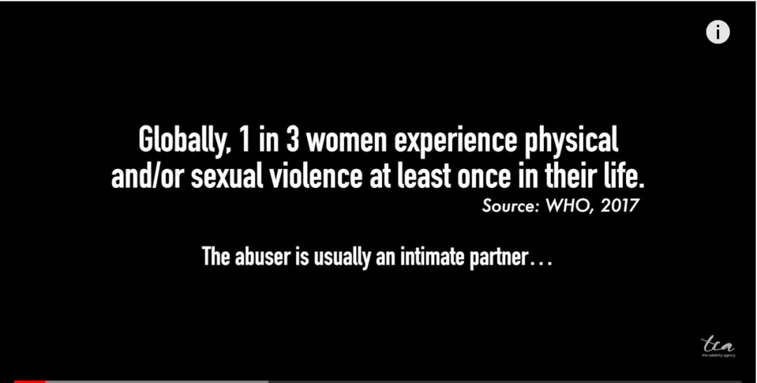 (在全球,三分之一的女性在生活中,曾遭遇过至少一次身体上的暴力或者性暴力。)
