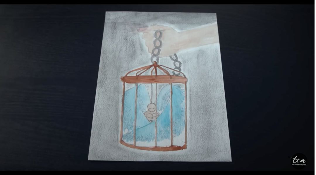 (一位19岁女孩儿画的画:被困在牢笼中的天使,无法脱身。)