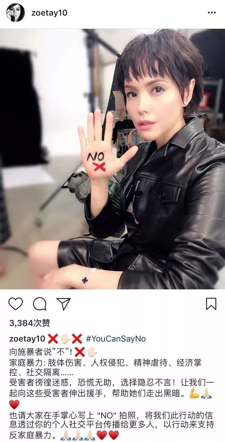 “You Can Say No.”是一场针对防止家庭暴力、职场性骚扰和约会性侵的运动。借此运动,阿姐希望能给承受家暴的女性离开的勇气,也希望能有更多人关注家暴问题。