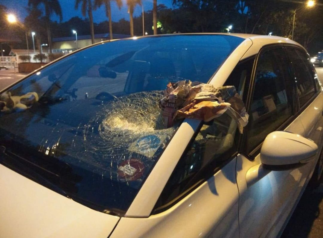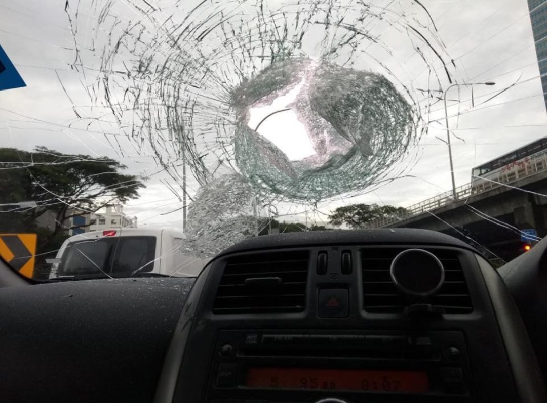 飞来横祸!新加坡高速路上司机小心,有人扔石头砸玻璃