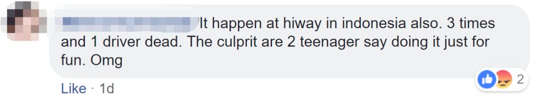 (印尼也有发生过3次这种事,一名司机死亡。凶手是2名青少年,理由是为了好玩……我的天)