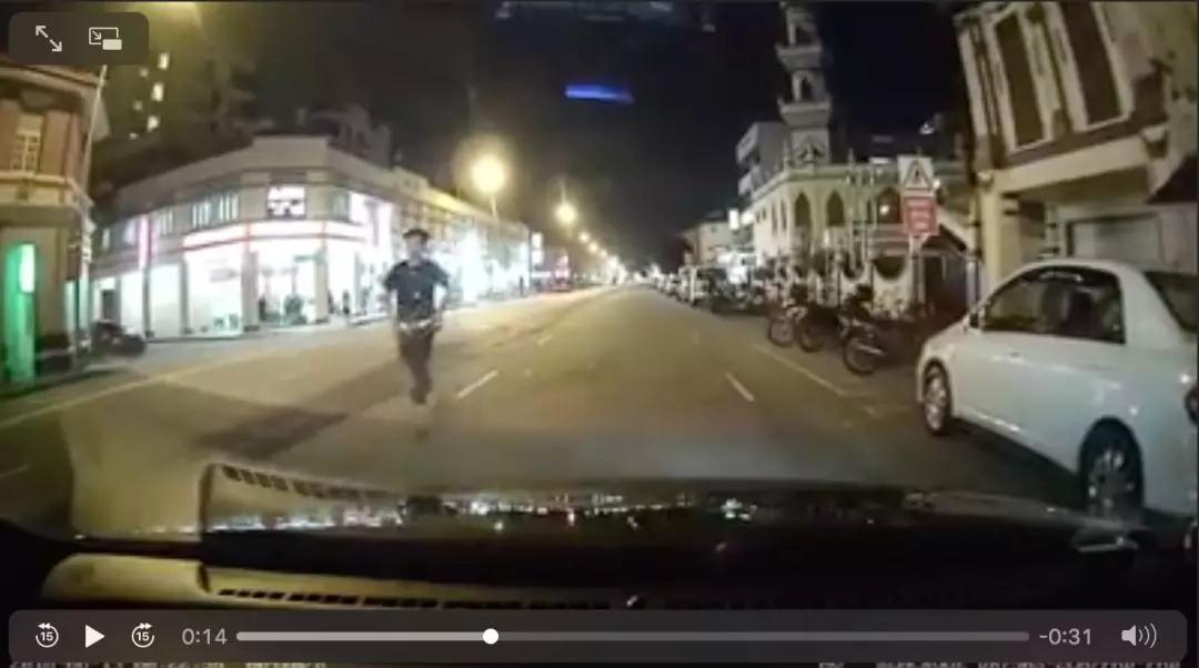 白衣男子深夜在芽笼路上狂奔撞车,行事诡异