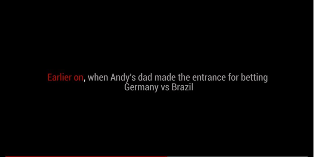 早些时候,Andy 的爸爸投注德国对战巴西这场比赛时,是这样入场滴……