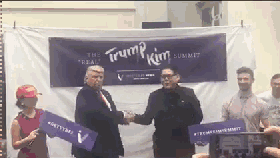 好吧,说到这,也该醒醒了。这两位真的是特朗普与金正恩(的替身,NO,应该说是cosplay),火眼金睛的我也差点被骗。