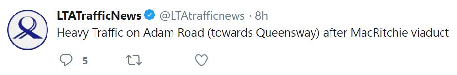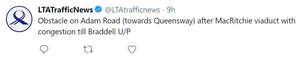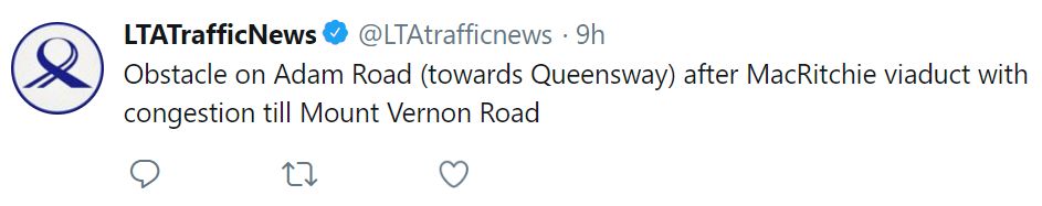 在早上8点左右,陆交局发现在亚当路(Adam Road)前往女皇镇的路段出现裂痕,导致路基下降,有两条车道受到影响。