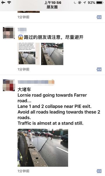 今天早上,新加坡罗尼路(Lornie Road)一处路面迸裂!造成严重交通堵塞!