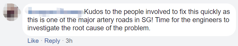 (向那些很快修复道路的工作人员致敬,因为这是新加坡主干道之一!是时候让工程师调查问题的根源了。)