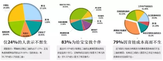 选择生二胎的原因主要集中在:希望孩子不孤独,年老有依靠,减轻一个孩子养四个老人的压力;放弃生二胎的理由多半是:经济负担太重,养育成本高;入托难,上学难,就业难,结婚难……