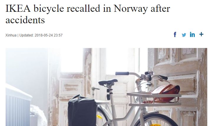 他们还提到:“我们知道很多宜家的顾客都非常喜欢他们的SLADDA自行车, 但是对于宜家来说安全永远是第一位。”