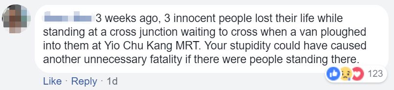(3个星期前,3个无辜的人在杨厝港路口等红绿灯的时候失去了生命。如果那里有人,你的愚蠢可能导致另一起不必要的致命车祸。)