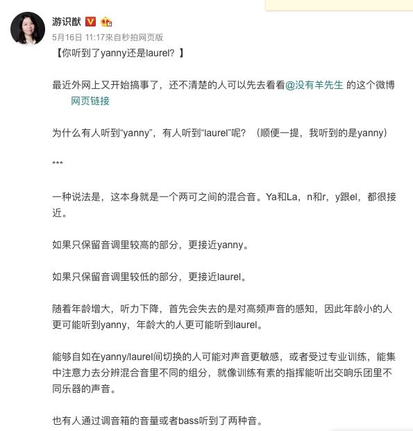 全球社交媒体都在刷的“Yanny”和“Laurel”,到底是个什么鬼