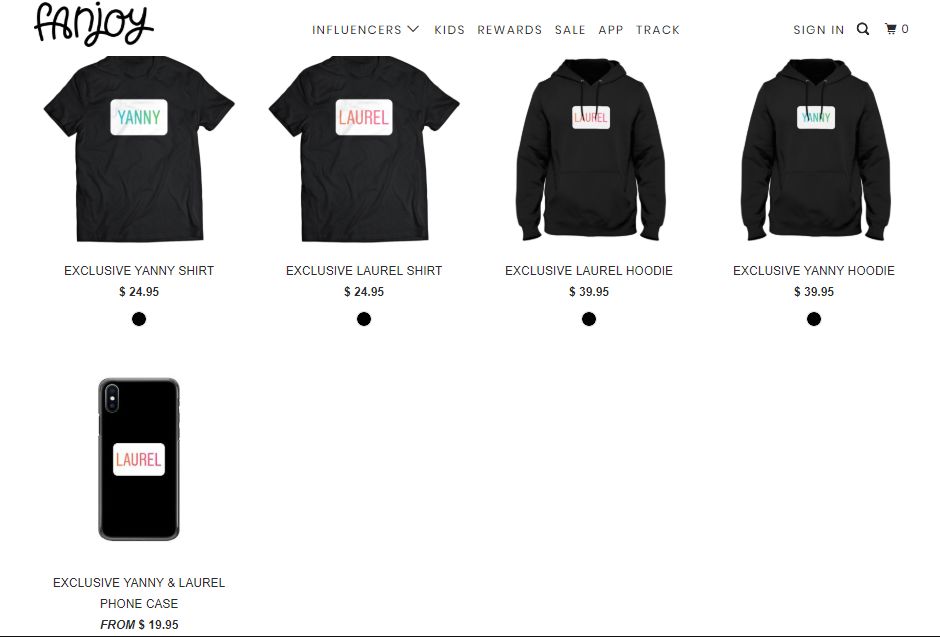 网友蹭热点的速度之快,都已经在网上售买印有“Yanny”和“Laurel”字样的衣服了。