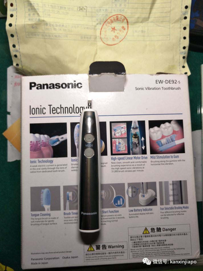 我于2015年8月15日在新加坡的樟宜机场购买了一款松下原装的电动牙刷EWDE92S,一直是严格按照使用说明书在使用的。