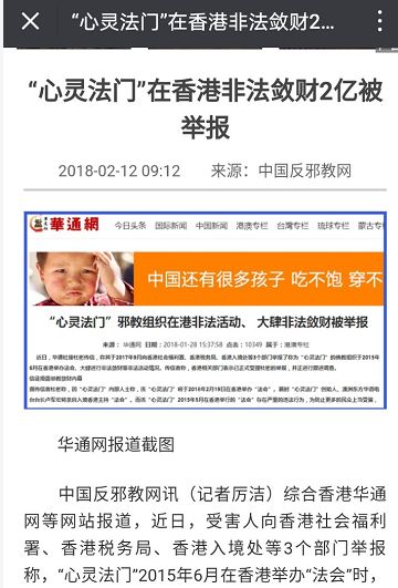 香港媒体报道,“心灵法门”弟子于2017年9月向香港社会福利署、香港税务局、香港入境处等3个部门举报“心灵法门”佛教组织,说他们于2015年6月在香港举办法会、未经申请大肆进行非法巨额筹款。
