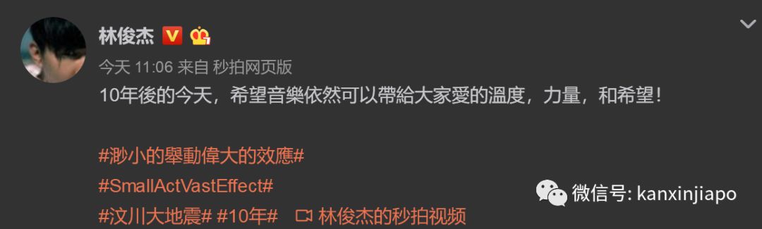 #汶川大地震10年#,林俊杰再献声,原来新加坡人是这样的