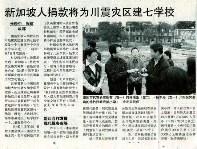 在那之后,一些因为赈灾而汇聚起来的新加坡人民,又奔走于中新两地,独立援建了七所崭新的学校,一座桥梁。
