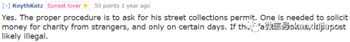 (要求募捐的人甚至都懒得告知自己是什么慈善组织,只给了一张印有两列名字和数目的表格,连字迹看上去都是一样的。我问他要准证他就给我看了一张。我并不全信但因为赶路,所以没时间叫警察并核对,扔下两块钱就走了。但要求募捐的人并不满足还叫我多给点。这简直像他在强迫我多给点钱,这变成勒索而非募捐了。)