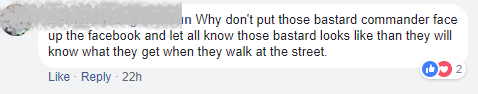 (为什么不把这些混蛋军官的脸公开到Facebook,让我们知道他们的样子,然后他们会知道走在路上会遇到什么。)