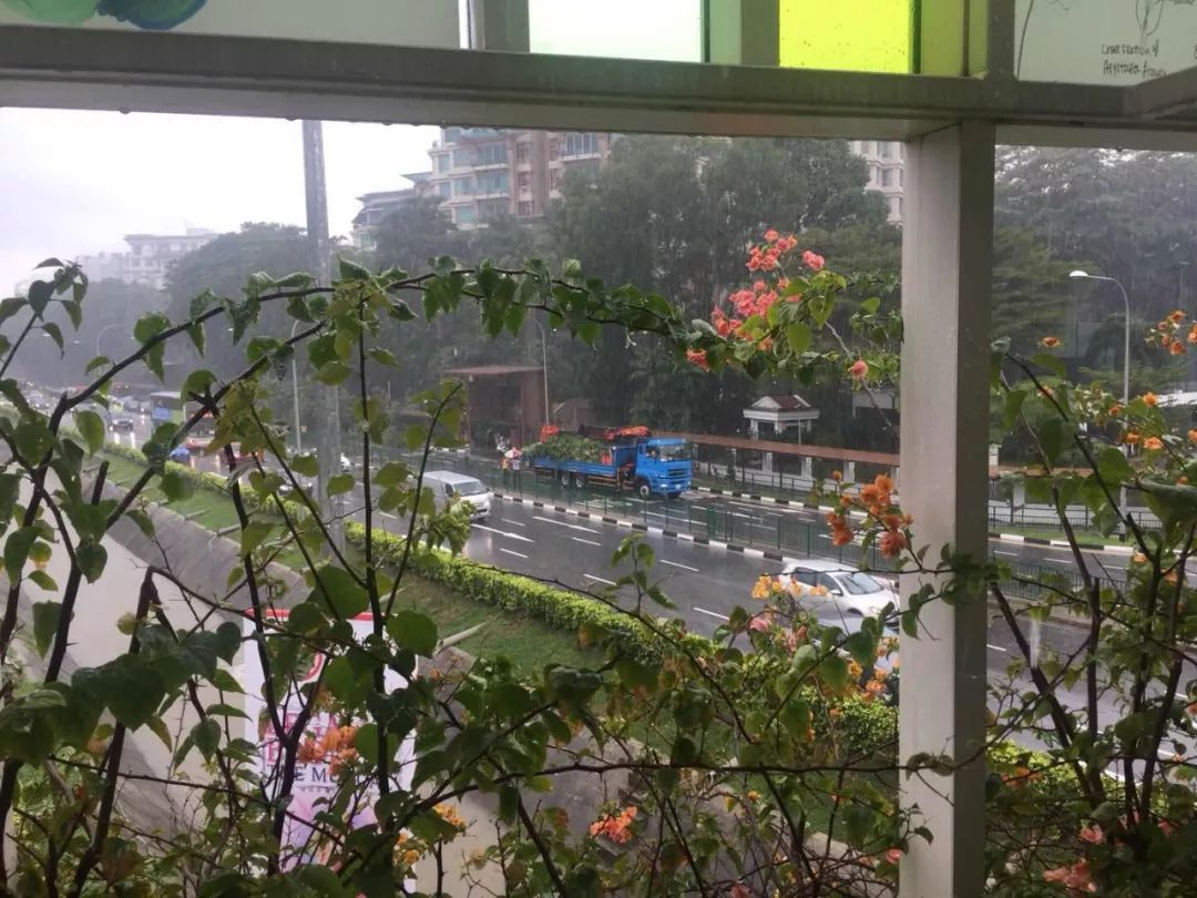 当时的雨有多大,从车窗可以略见一斑!拍照时,已经是树倒后,雨势减弱了的场景。