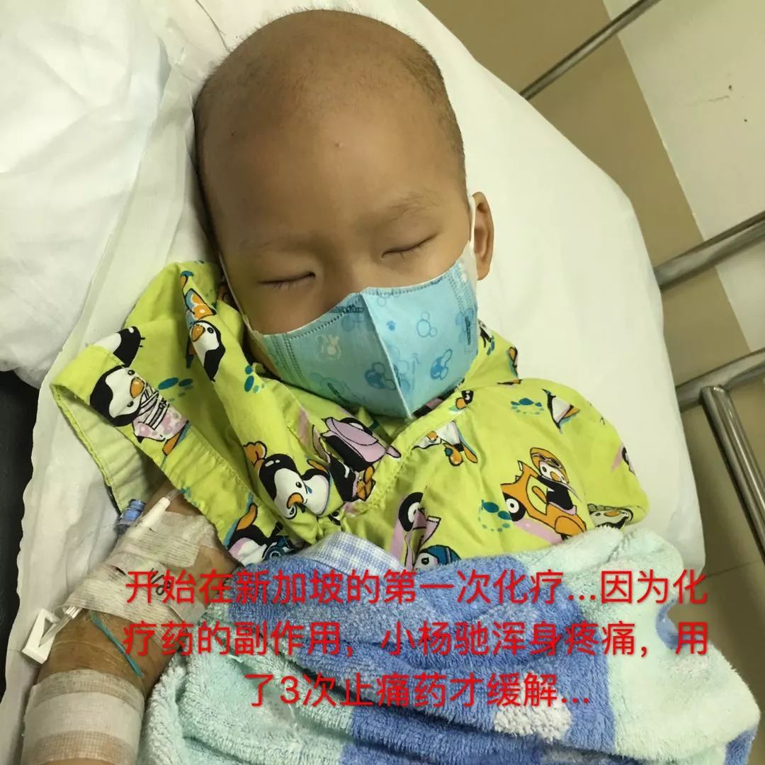 去年10月杨驰妈妈带着生病的杨驰来新加坡求医,坚强挺过10次化疗、手术、移植、放疗后病情得到有效控制,眼看着这场与病魔的战斗快结束时,一次结疗骨穿检查又打破了这个小男孩回家的“梦想”。