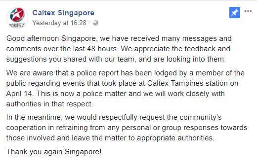 昨天,Caltex表示已经得知有人向警方报案,并说,一切情况就看警方怎么处理,他们会和有关当局进行密切合作。