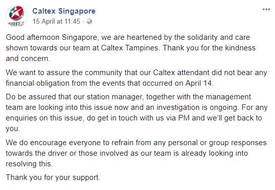 Caltex在上个星期天发文告知网友,加油大叔并没有任何经济上的损失。