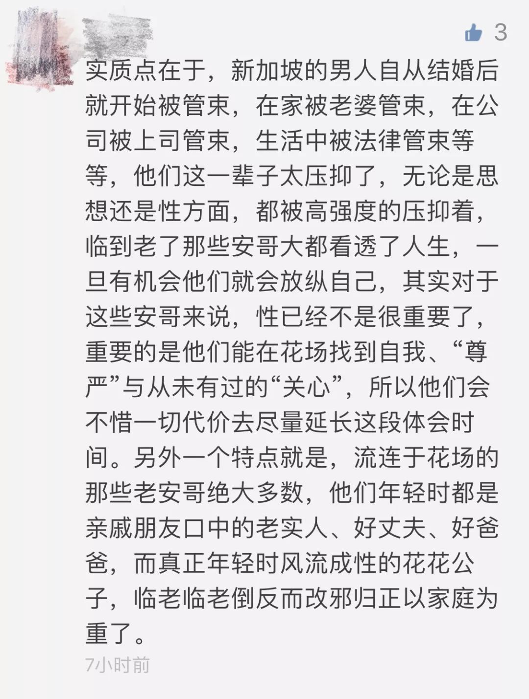 新加坡的男人年轻时各个方面都太压抑,老了就要解放天性了。