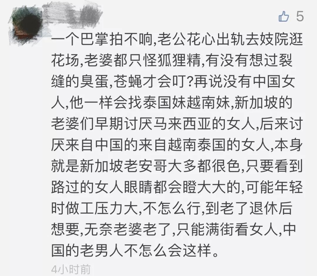 我们看后,陷入了婶婶的思考,不是全世界男人都很色吗?为什么单单要强调说新加坡安哥很色?新加坡安哥很色似乎也成了一个大家对新加坡的印象之一。