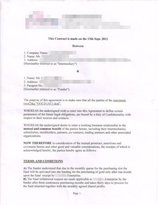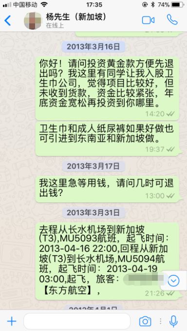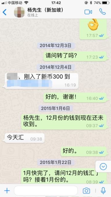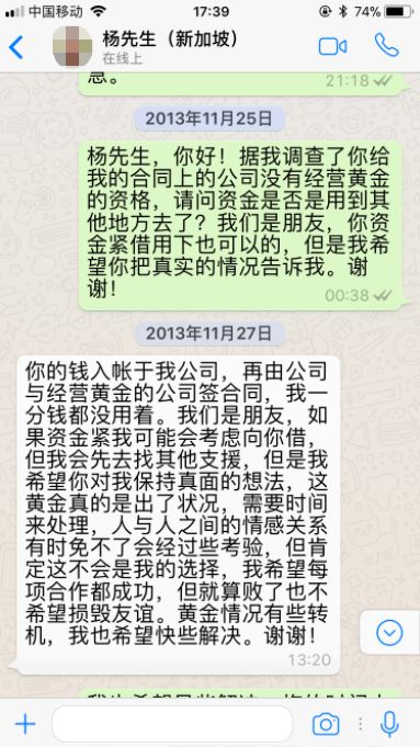 在8月时,他反复与我讲,让我汇10万美金到他公司帐户,他去做黄金生意,保底不低于2%,最高不超过5%每个月回报给我。