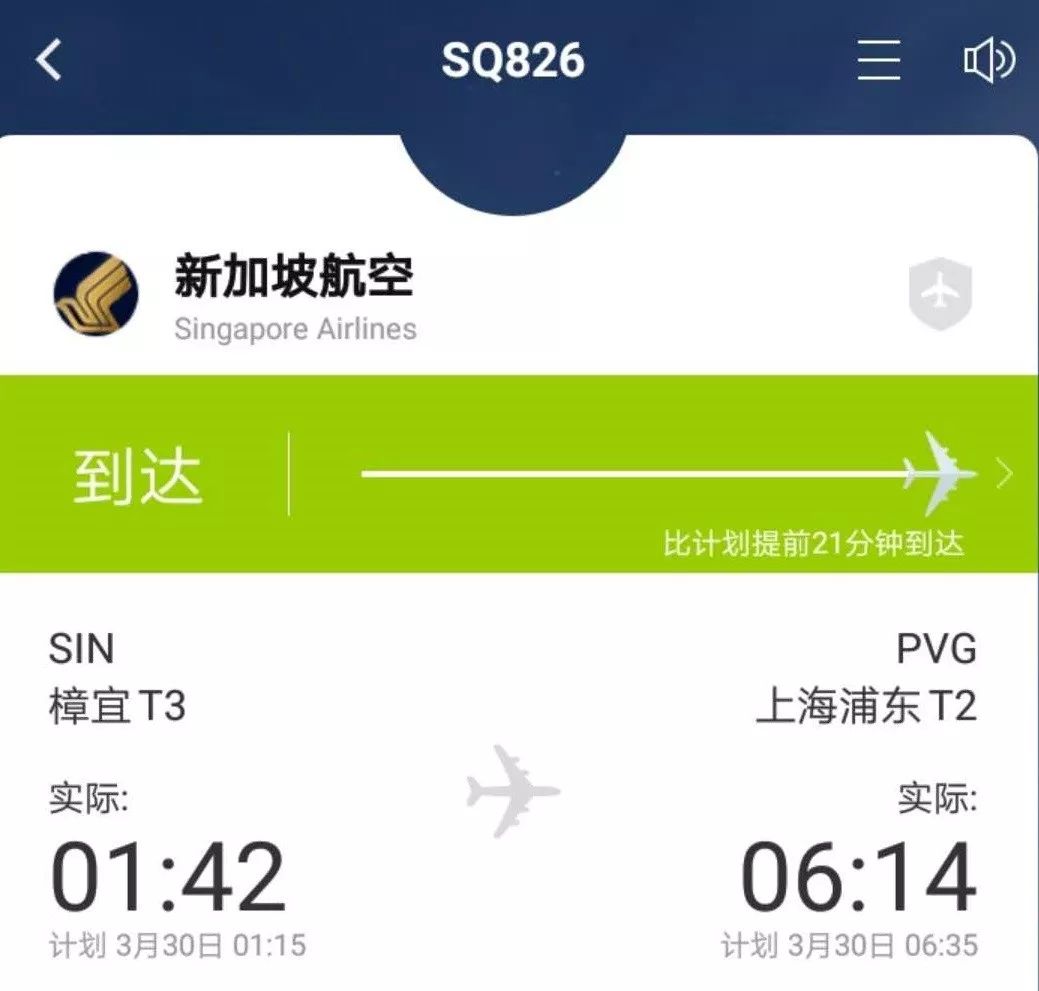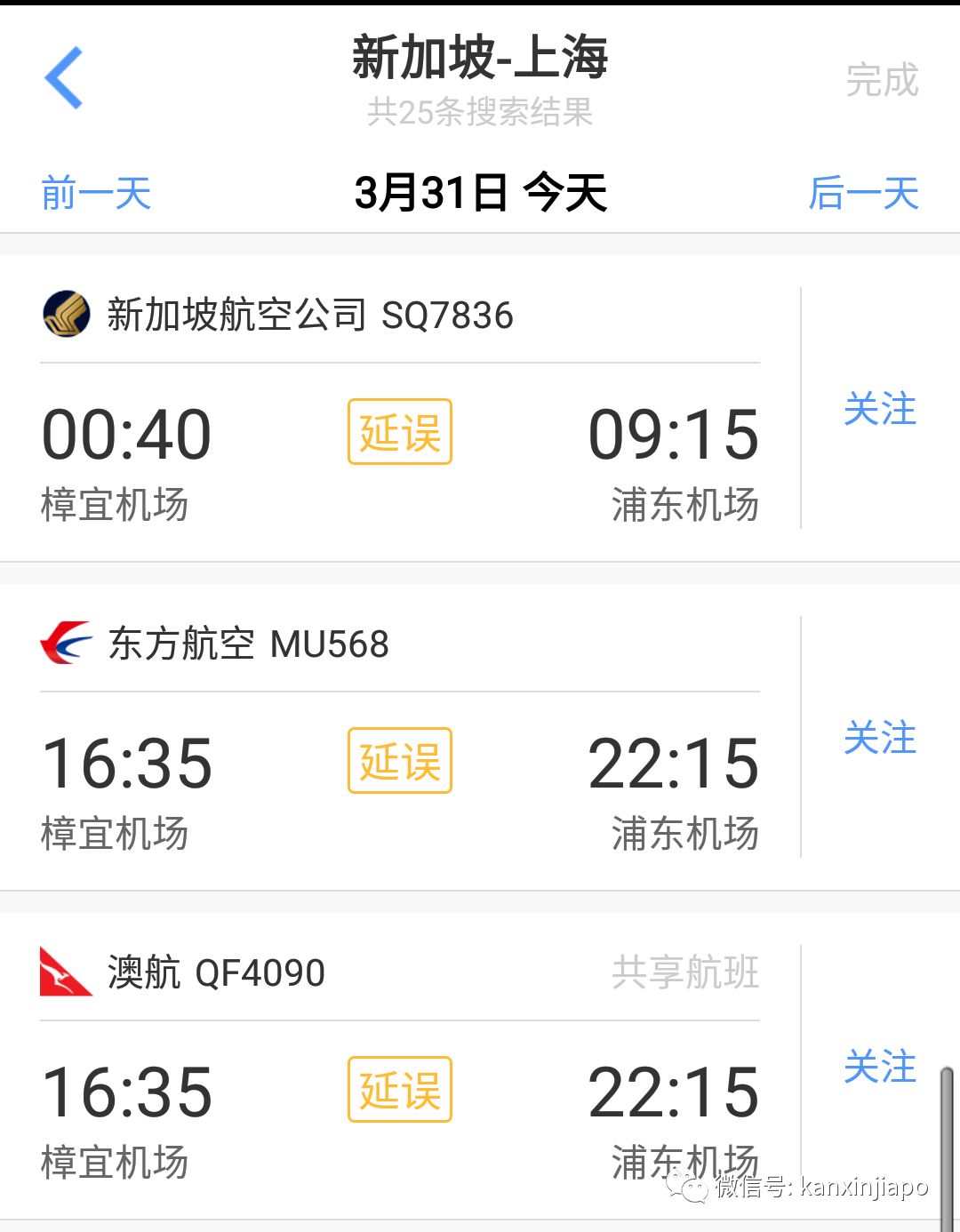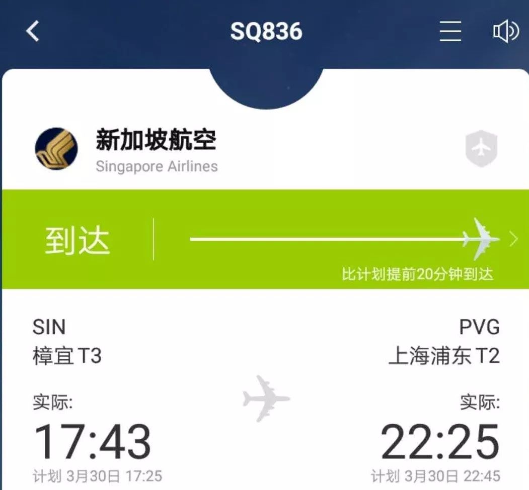 但除了这架班机,其他昨天从新加坡飞上海的航班,都有不同程度的晚点: