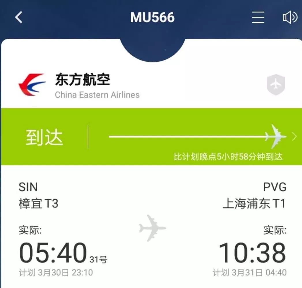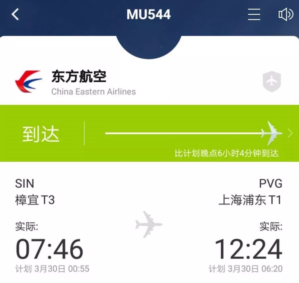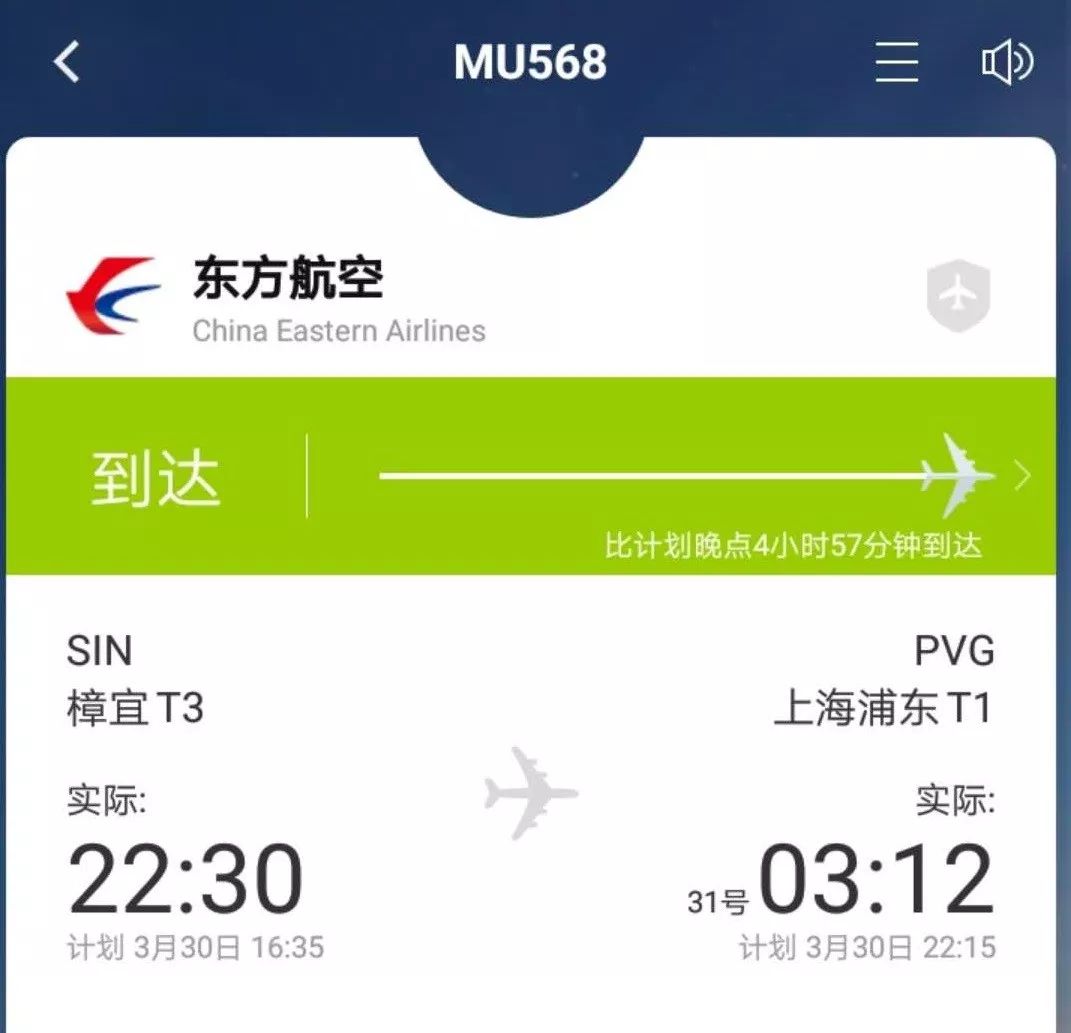 但除了这架班机,其他昨天从新加坡飞上海的航班,都有不同程度的晚点:
