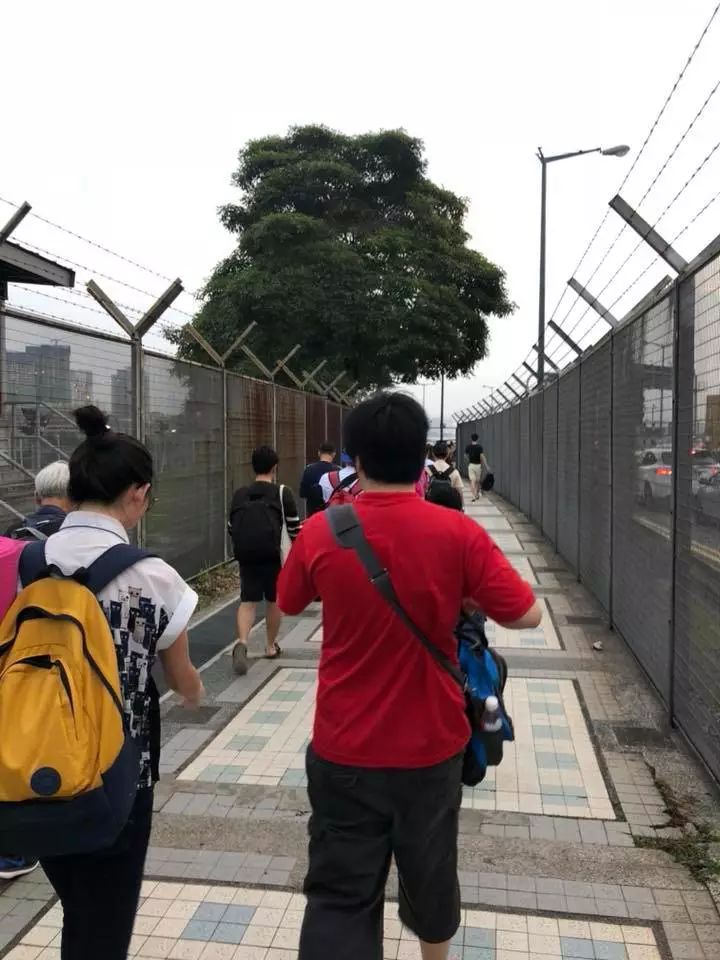 被困在巴士中的乘客不想等待,很多人选择徒步通关,结果走路,也得排队。