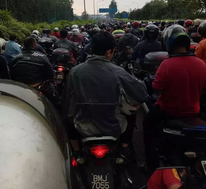 网友Patnes Khor:车道封了留给摩托车走,结果车队依旧被堵得一动不动。