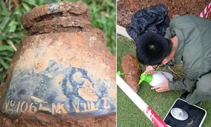 经过鉴定,是二战时期日本留下,并且保存完好。在经过处理后运到安全区域引爆。