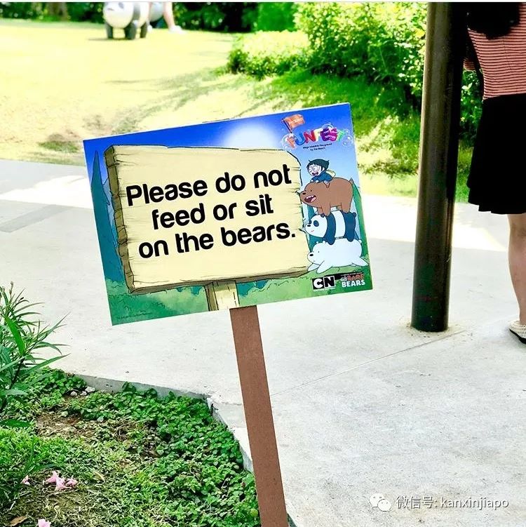 尽管展区有专门设立提示牌“请不要喂食或骑在小熊背上”,但仍有一些熊孩子和熊大人向这些充气熊伸出魔爪。