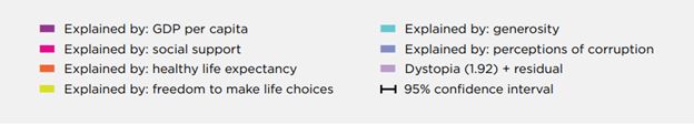 评比标准包括:人均国内生产总值,社会支持,健康平均寿命,选择自由性,慷慨性,贪污感知指数等。