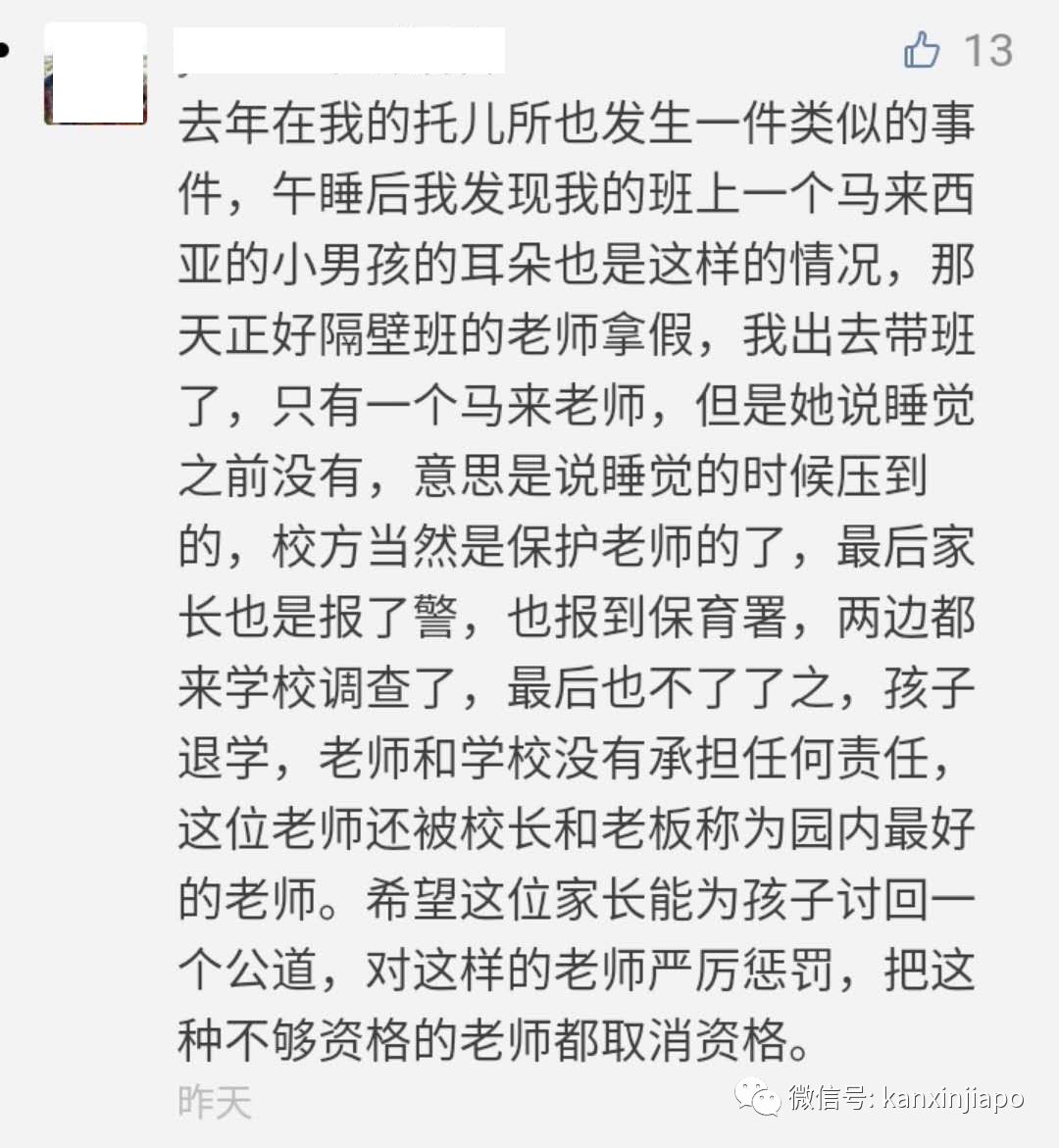 昨天,幼儿园女童遭受人为“虐待”,导致耳部淤青挫伤,精神受创的事件轰动新加坡!今天,事情有了新的进展……